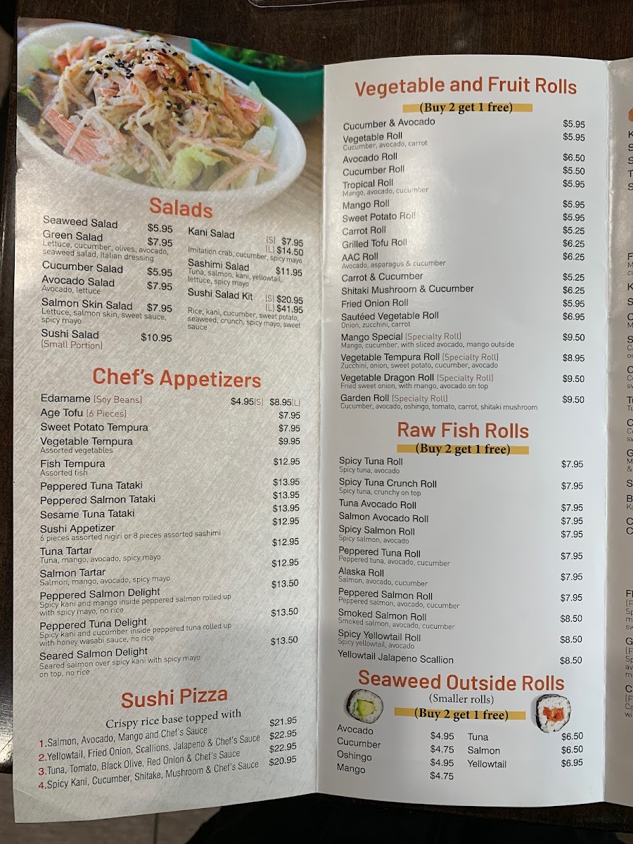 The beauty of Stop Chop & Roll lies in its extensive and carefully curated menu. From delightful appetizers to refreshing low-carb cucumber-wrapped rolls, there's an array of choices that cater to every palate. You might start with the Edamame ($6.45) or indulge in the crispy Sweet Potato Tempura ($11.45), which beautifully balances sweetness and crunch.